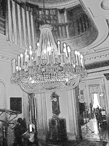 the oval walls which Michael had built. Michael, like his parents before him, also has a tenant who lives on the second floor. She graciously showed me several old prints of New York, a beautiful view of the mansion front lawn, and two Tiffany stained glass windows.